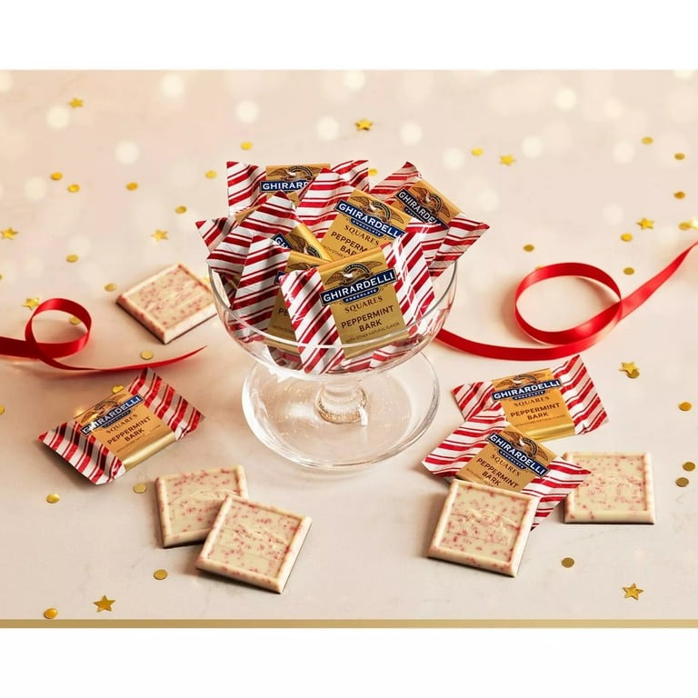 Kẹo Ghiradelli Chocolate Squares Peppermint Bark Collection thuộc thương hiệu socola chất lượng cao cấp GHIRARDELLI với thành phần được chọn lưạ kỹ lưỡng. Vị socola mượt đậm, thơm và tan chậm rất thú vị. Chỉ dùng phần lõi giữa hạt cacao để rang, đảm bảo vị cacao đồng nhất